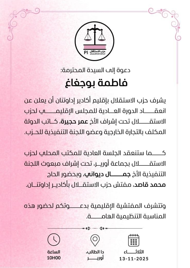 بعد المؤتمر الإقليمي لحزب الاستقلال الذي انعقد يوم الثلاثاء الماضي في أورير، أصبح اسم فاطمة باجغاغ يتردد بقوة في الأوساط السياسية المحلية. فهل هي حقًا انتقلت إلى حزب الاستقلال؟ هذا السؤال يطرح نفسه بقوة بعد الإعلان المفاجئ عن انضمام السيدة باجغاغ، العضوة البارزة في المجلس الجماعي عن دائرة 9، إلى صفوف الحزب، ما أثار العديد من التساؤلات حول دوافع هذا التحول السياسي وأثره المحتمل على المشهد السياسي في المنطقة.