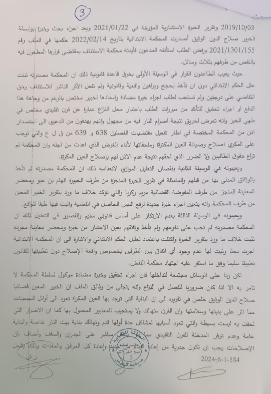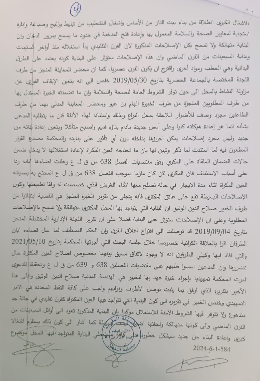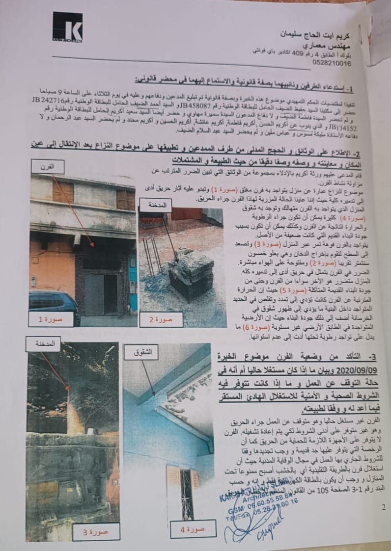 وقد سبق أن صدرت في حقهم عدة أحكام قضائية ضد مطالب المشتكى بهم، والتي تؤكد كلها أن الفرن يشكل خطرا على البناية: