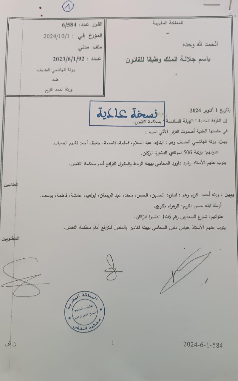 كالقرار عدد. : 584/6 المؤرخ في 1/10/2024، ملف مدني عدد : 2023/6/1/92