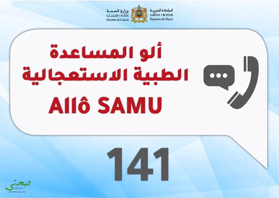 جدير بالذكر أن خدمة “ألو 141 للمساعدة الطبية الاستعجالية” ( Allô SAMU 141) تغطي حاليا ثماني جهات، فيما يمكن للمواطنين بالجهات الأربع المتبقية وهي، درعة تافيلالت، بني ملال- خنيفرة، كلميم – واد نون، الداخلة -وادي الذهب، الاتصال بخدمة خدمة “ألو اليقظة الوبائية 080 100 47 47″
