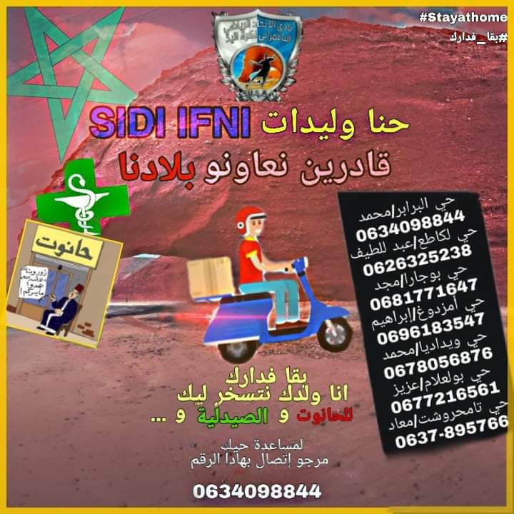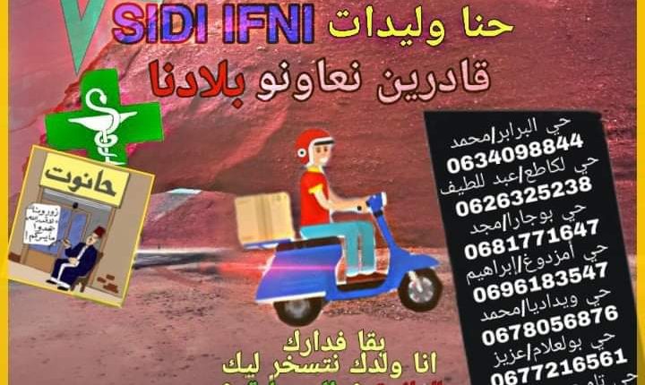 وقد تم وضع أرقام هواتفهم راهن إشارة جميع ساكنة سيدي افني ، و ذلك في حالة احتياج أي شخص للدواء أو الأكل أو أي شيء طارئ.