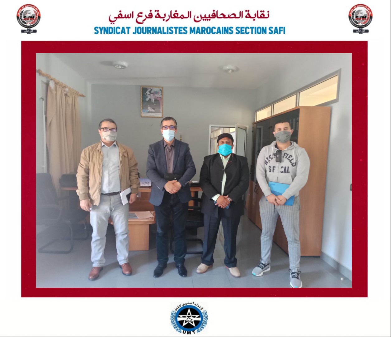 استكمالا لتنزيل مخرجات الجمع العام لتجديد المكتب الاقليمي لنقابة الصحافيين المغاربة فرع أسفي ، و تنفيدا لتوصيات الأخوات و الإخوة الأعضاء ، يواصل المكتب الاقليمي عقد لقاءات تواصلية مع العديد من مسؤولين على الصعيد الإقليمي بشتى القطاعات الحكومية، بغية ربط جسور التواصل و البحث عن المعلومة من مصدرها و فق ادبيات و أخلاقيات المهنة .