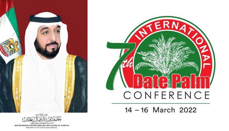 تحت رعاية صاحب السمو الشيخ خليفة بن زايد آل نهيان رئيس الدولة “حفظه الله” تُعْقَدْ فعاليات المؤتمر الدولي السابع لنخيل التمر بفندق قصر الإمارات بأبوظبي في الفترة من 14 – 16 مارس 2022. وتقوم جائزة خليفة الدولية لنخيل التمر والابتكار الزراعي بالتعاون مع جامعة الإمارات العربية المتحدة وأكثر من 25 منظمة إقليمية ودولية متخصصة بتنظيم المؤتمر الذي يشارك فيه ما يناهز 475 أكاديمي وخبير دولي يمثلون ما يناهز 42 دولة بحضور عدد من وزراء الزراعة في الدول المنتجة للتمور.
