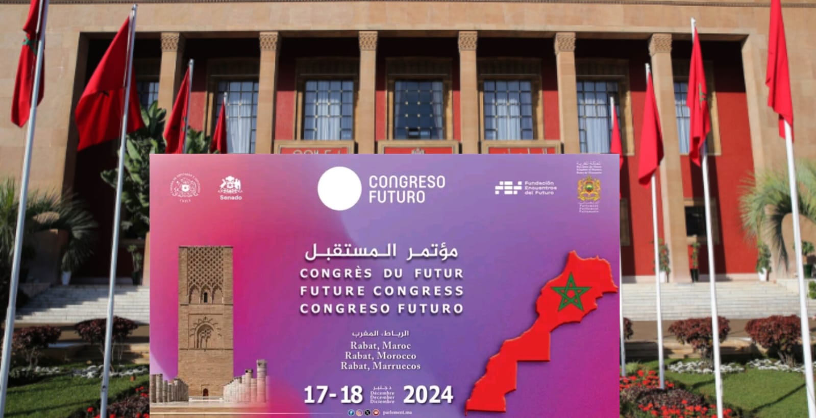 El Parlamento, con sus dos Cámaras, la Cámara de Representantes y la Cámara de Consejeros del Reino de Marruecos organiza, en cooperación con la Fundación Encuentros del Futuro, la Cámara de Diputadas y Diputados y el Senado de la República de Chile, la próxima edición del “Congreso Futuro”, los días 17 y 18 de diciembre de 2024, en la sede del Parlamento marroquí en Rabat.
