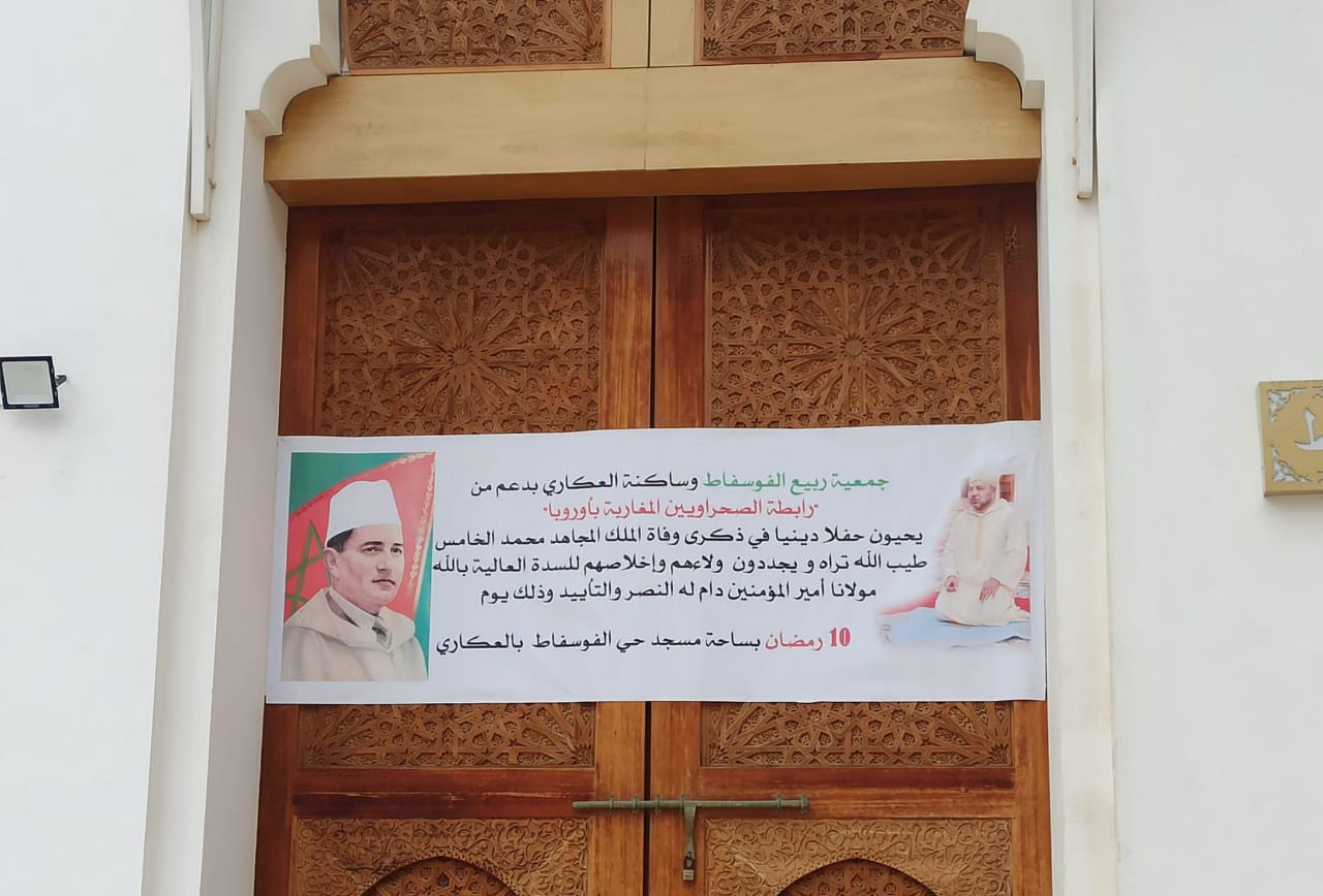 بمناسبة الذكرى 66 لوفاة المغفور له محمد الخامس، طيب الله ثراه والذي يصادف 10 من رمضان نظمت أمس جمعية ربيع الفوسفاط وساكنة العكاري بدعم من رابطة الصحراويين المغاربة بأوروبا حفلا دينيا، بخشوع وإكبار واعتزاز وتقديرا لهذا الملك المجاهد الذي ضرب أروع الأمثلة في التضحية والفداء، وفي الكفاح والنضال والصمود مع شعبه من أجل التحرير والاستقلال، مقدما الدليل الساطع على أنه كان دوما في مقدمة المقاومين من أبناء شعبه الوفي الذي انتفض انتفاضة عارمة بمجرد انتشار خبر نفي عاهل البلاد ورمز وحدتها وسيادتها مضحيا بالغالي والنفيس من أجل عودة الملك الشرعي.