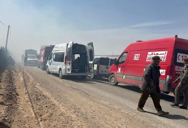 حادثة اصطدام قوي بين حافلة وسيارتين نقل عاملات وعمال زراعيين بإقليم اشتوكة آيت باها تخلف إصابة 25 عاملة زراعية بجروح متفاوتة الخطورة