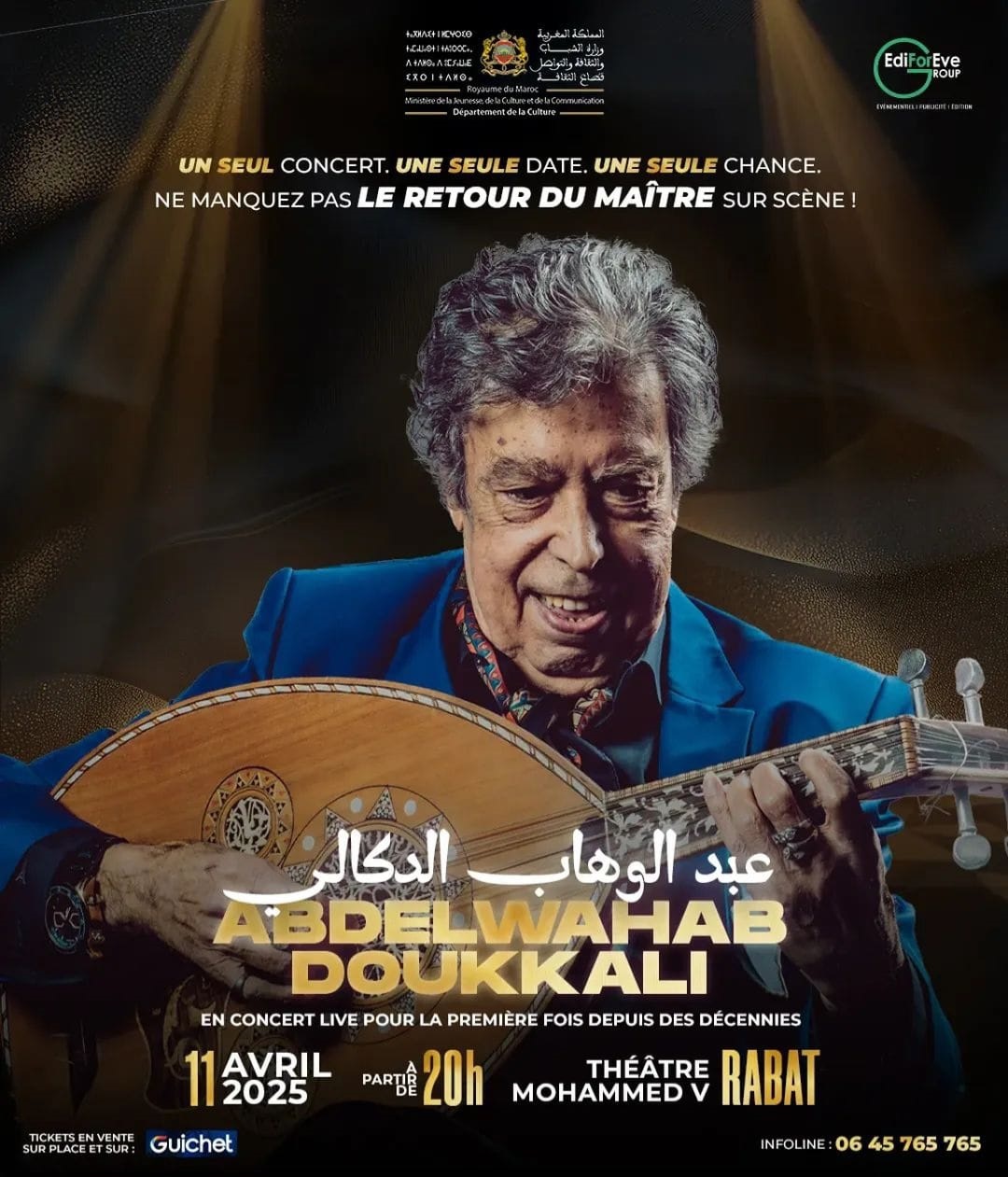 منصة *GUICHET.MA* تعلن عن توفر التذاكر للحجز، لا تفوّتوا فرصة حضور هذه الليلة الاستثنائية يوم الجمعة، 11 أبريل 2025 بمسرح محمد الخامس، الرباط.
