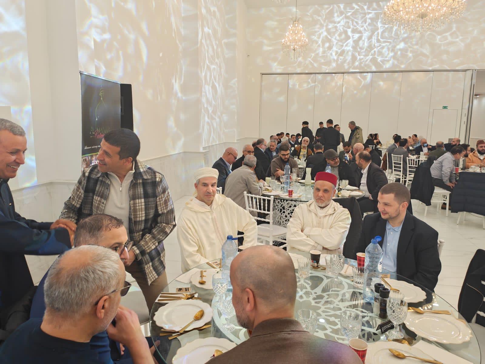 حيث كانت الاجواء مفعمة بالفرح و الامتنان في مشهد جسد المعنى الحقيقي للوحدة والتلاحم ، وسط حضور متنوع من اطباء واساتذة ورجالات الامن من اصول مغربية ، زيادة على شخصيات وازنة من المجتمع المدني ، عبروا عن قوة الروابط التي تجمع ابناء الجالية المتماسكة ،بقيادة ممثليها الديبلوماسية الساهرة على خدمتها ورعاية شؤونها .