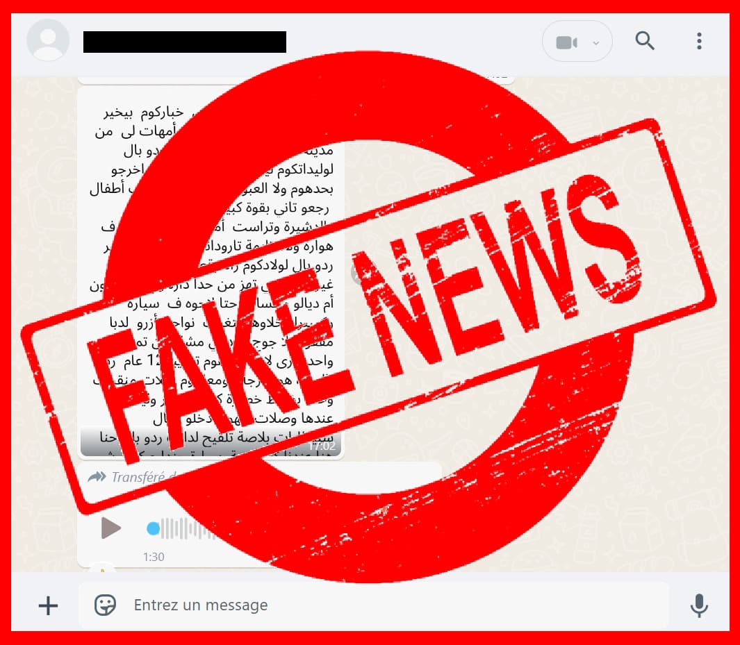 بيان حقيقة : أمن أكادير يتفاعل مع تسجيلات صوتية تداولها مستعملو تطبيقات التراسل الفوري على الهواتف المحمولة تدعي بشكل تضليلي وجود عصابة إجرامية مزعومة تختطف الأطفال بواسطة سيارة بالمدينة وضواحيها