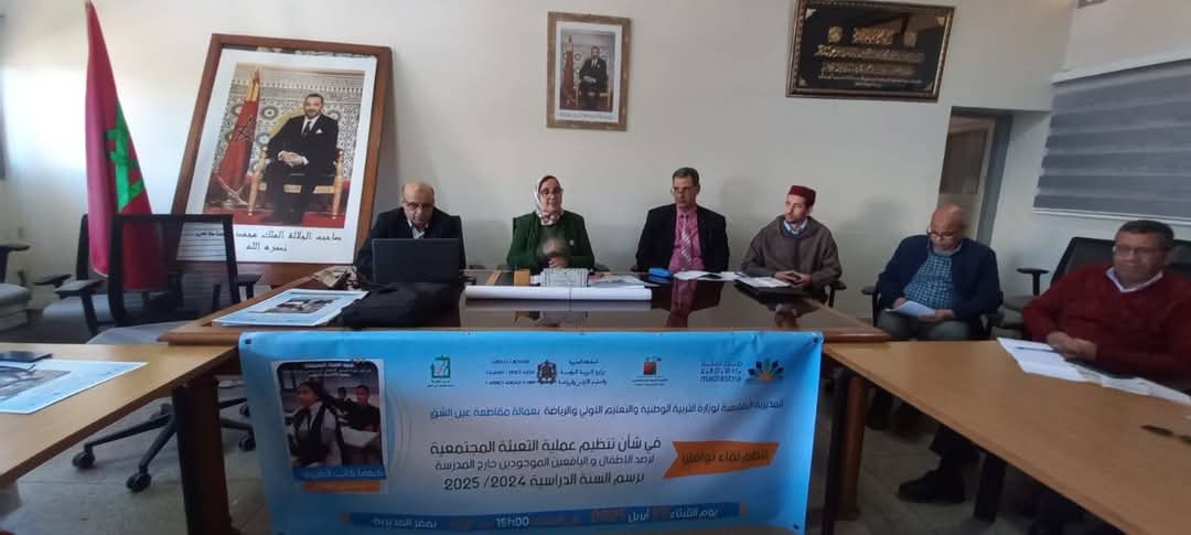 ترأست الأستاذة لطيفة لماليف المديرة الإقليمية لوزارة التربية الوطنية والتعليم الأولي والرياضة بعمالة مقاطعة عين الشق، يومه الثلاثاء 22 أبريل 2025، عملية التعبئة المجتمعية لرصد الأطفال واليافعين الموجودين خارج المدرسة برسم الموسم الدراسي 2024-2025 وذلك بحضور السيدات والسادة ” ممثلي مديرية الأمن بمنطقة عين الشق -المندوبسة الإقليمية لوزارة الأوقاف والشؤون الإسلامية- المندوبية الإقليمية للتعاون الوطني، الفرع الإقليمي للفدرالية الوطنية لجمعيات أمهات وآباء وأولياء أمور التلاميذ، الفرع الإقليمي للالكونفدرالية الوطنية لجمعيات أمهات وآباء وأولياء أمور المدني؛ فعاليات المجتمع المدني، رؤساء المصالح بالمديرية، ومديرة الثانوية الإعدادية الإمام الهبطي”.