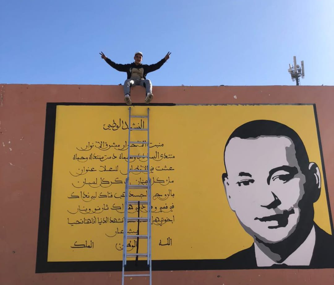 من بين الصور التي ابدع فيها جدارية رائعة لصاحب الجلالة الملك محمد السادس نصره الله بإحدي المدارس العمومية و صورة السيد لحسن لمراش رئيس المجلس الجماعي السابق و قائد قيادة أورير حاليا و عدد من الشخصيات المحلية و الجهوية ،