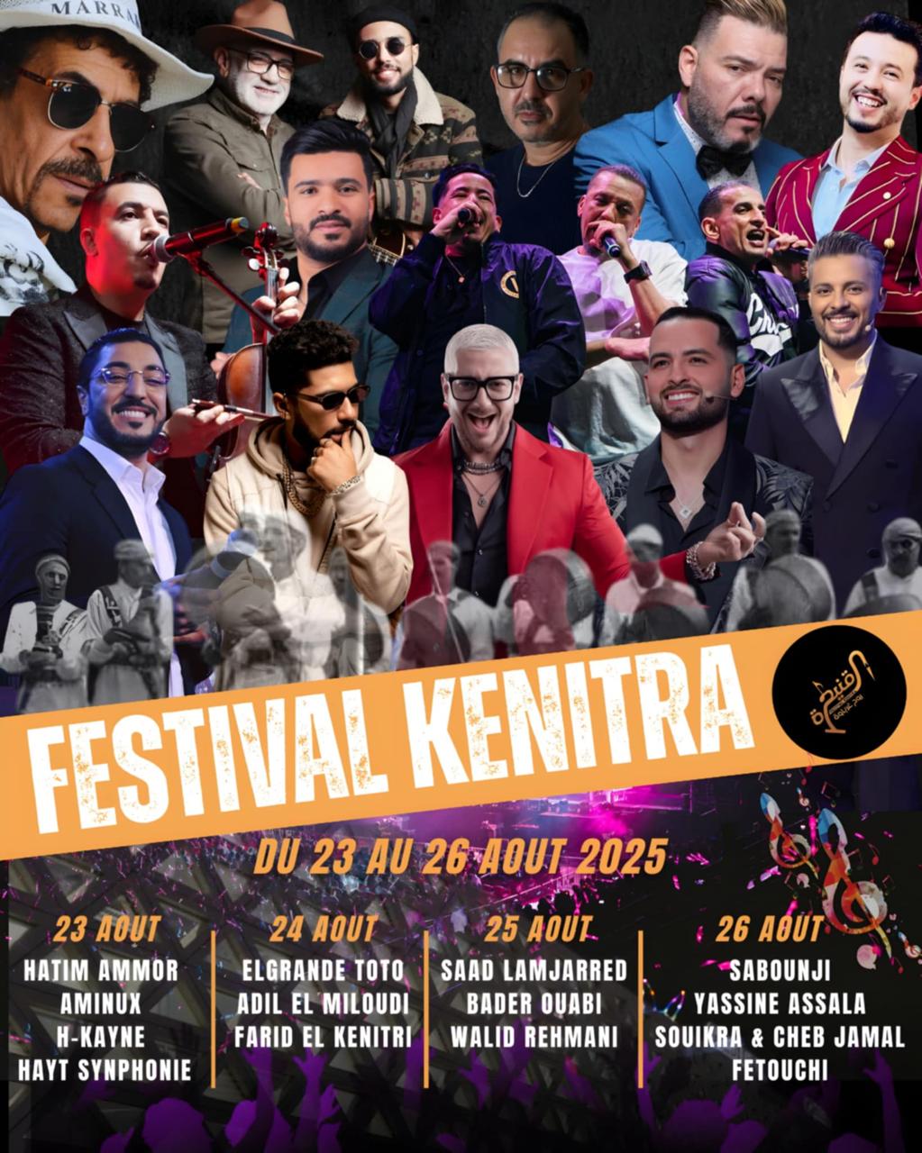 تحتضن مدينة القنيطرة، من 23 إلى 26 غشت 2025، فعاليات مهرجان القنيطرة في نسخته الجديدة، والذي يعد أحد أبرز المواعيد الفنية والثقافية المنتظرة بالمغرب، جامعًا بين التنوع الموسيقي، الإبداع، والفرجة.