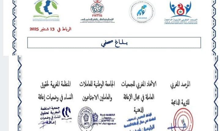 كما نبه البلاغ إلى غياب رؤية شاملة للنهوض بحقوق الأشخاص في وضعية إعاقة، خاصة في ظل تعثر تنزيل البرامج الاجتماعية المهيكلة مثل النظام الحديدي للإعاقة، وعدم إصدار النصوص التنظيمية المتعلقة بالقوانين ذات الصلة بحقوق الأشخاص في وضعية إعاقة، وهو أمر يعكس ضعف الأثر الحكومي في هذا المجال.